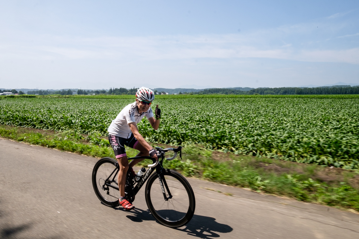 We begin with a scenic downhill ride along a birch-lined road towards Biei town, known for its stunning landscape of rolling hills and vast crop fields that remind visitors of Tuscany. The gently rolling terrain offers perfect cycling conditions as we warm up our legs.