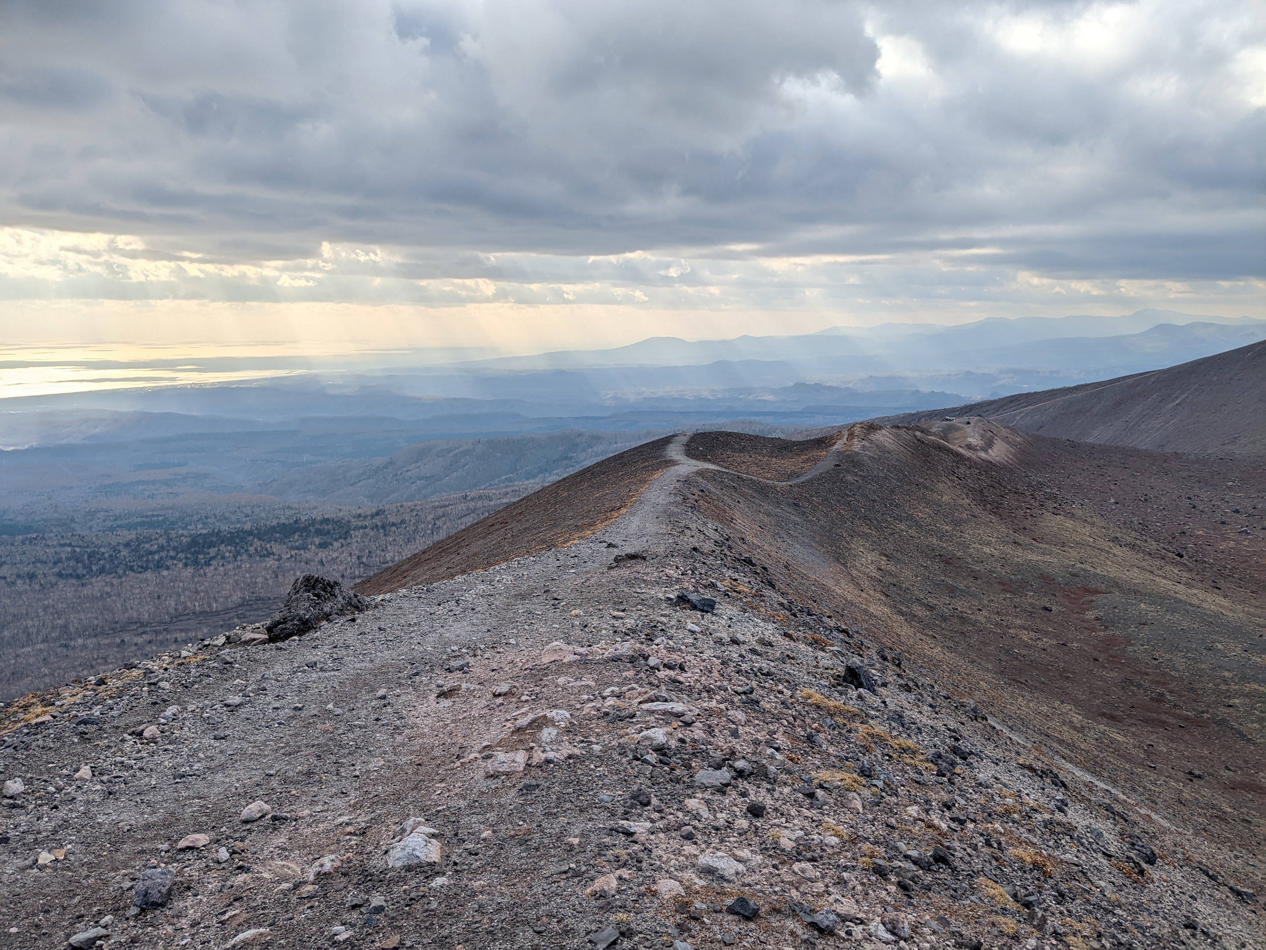 For our final day on the trails, we have saved the tour's most challenging hike. We climb Mt. Tarumae (7.4km), an active volcano looming over Lake Shikotsu. The initial ascent gets the heart pumping, but the stark, vegetation-free landscape offers the potential for sweeping views of the lake and the Pacific Ocean on clear days. As we traverse the summit cone, we witness the volcano's power through its steaming vents and imposing lava dome